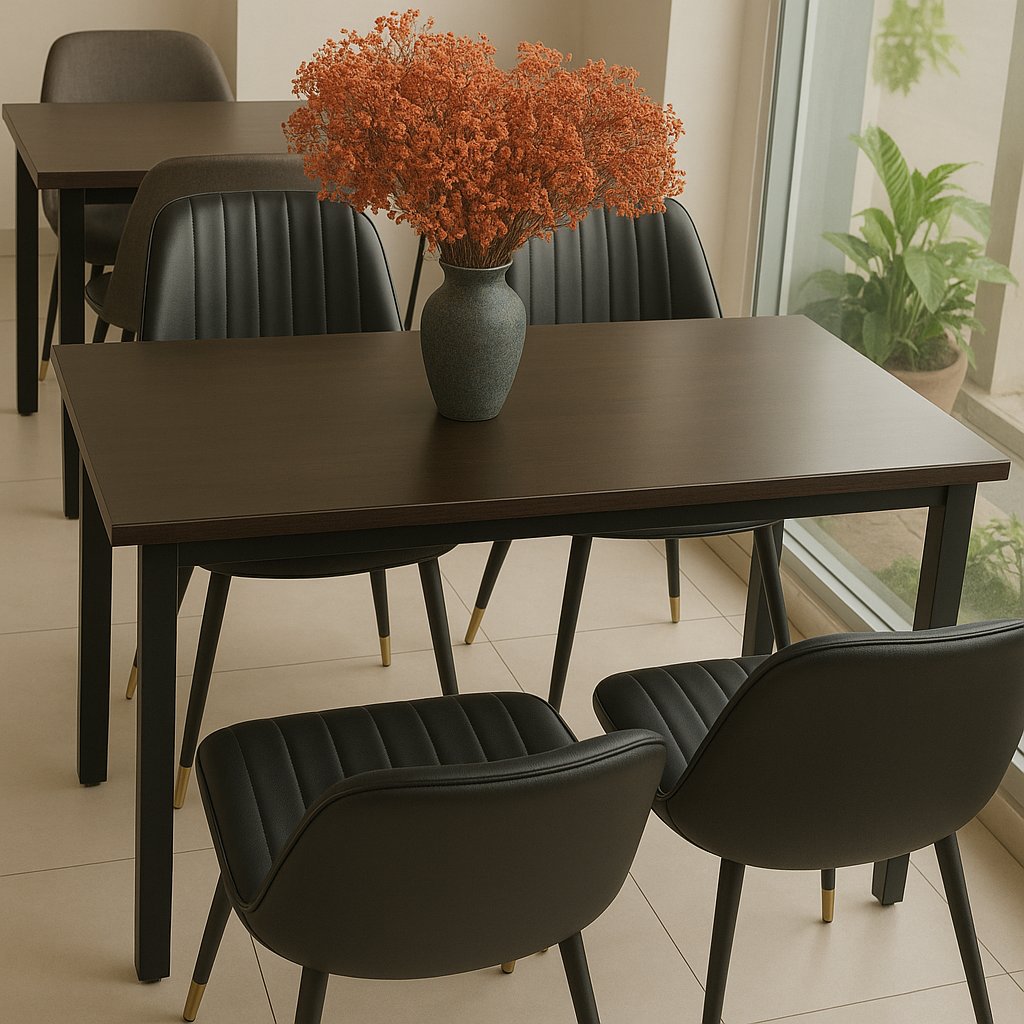 Màu sắc: Bàn gỗ nâu sẫm – Ghế đen vân sọc thời thượng